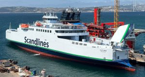 Med et lille års forsinkelse tager Scandlines snart en ny emissionsfri fragtfærge i brug. Når lade-infrastrukturen i havnene i Rødby og Puttgarden er klar, kan den sejle udelukkende på elektricitet.