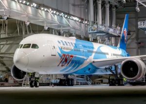 Klik for stort format. På Boeing B787 nummer 787 står der på skroget, at dette er en ganske særlig udgave af langruteflyet. Foto: Boeing.