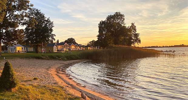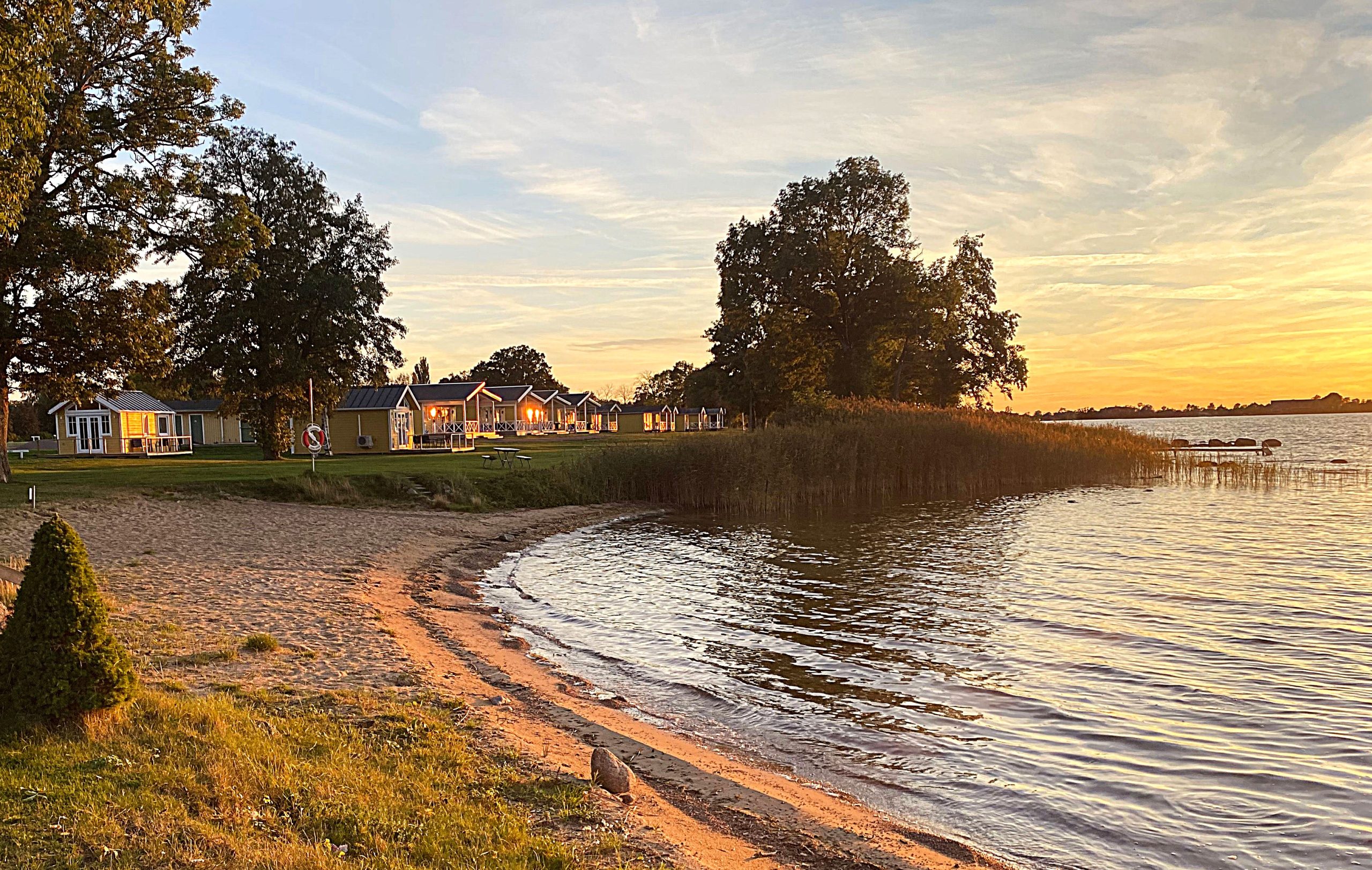 Vadstena Campingplads ligger ud til Sveriges næststørste sø, Vättern, og har 470 pladser til campingvogne samt 40 hytter. PR-foto via First Camp.