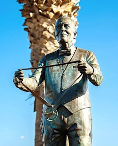 Statuen i Puerto del Carmen hylder Kenneth Gasque for en lang og beundringsværdig indsats – for Ironman, sport i det hele taget og for så meget andet på Lanzarote. Statuen er skabt af den lokale kunstner Cintia Machin, og står ved Los Cocoteros-lejlighedskomplekset i Puerto del Carmen.