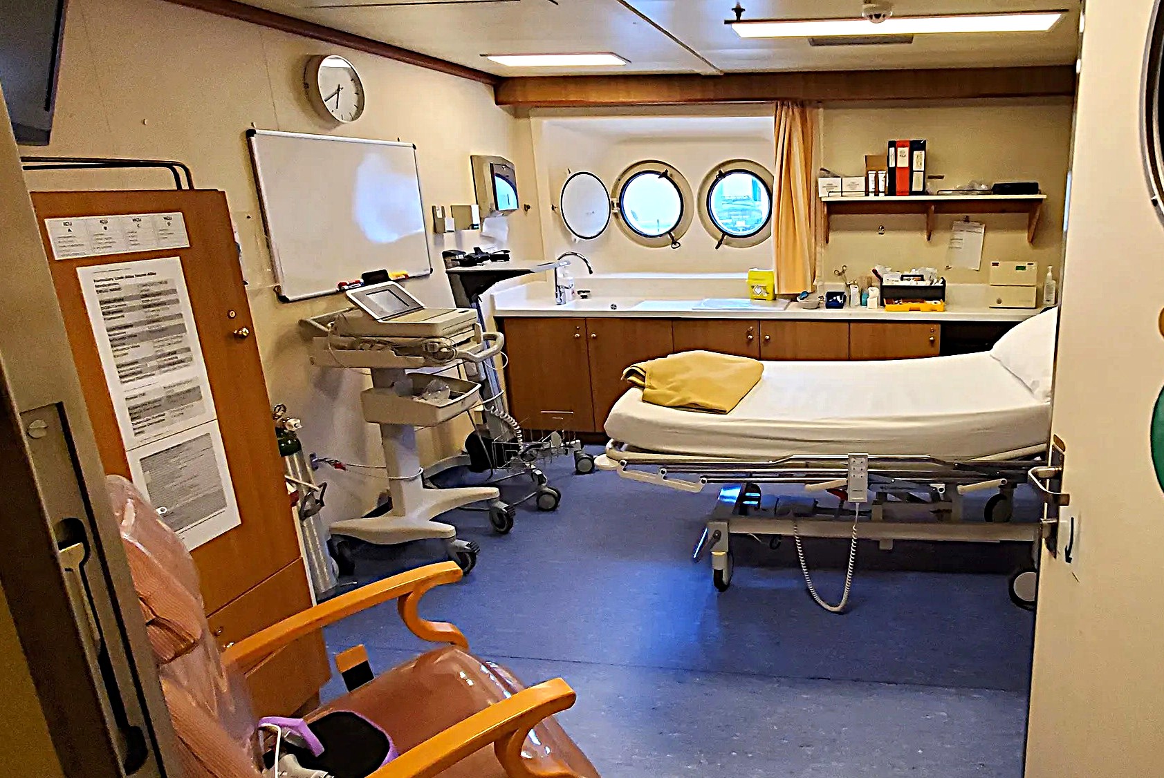 Krydstogtskibe har et medical center, dets størrelse kan afhænge af, hvor mange passagerer, skibet har...