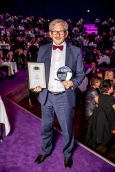 Hotel Koldingfjord vinder Danish Travel Awards 2018 som bedste hotel uden for hovedstaden. På scenen til at modtagen prisen er Peder J. Madsen, Hoteldirektør.