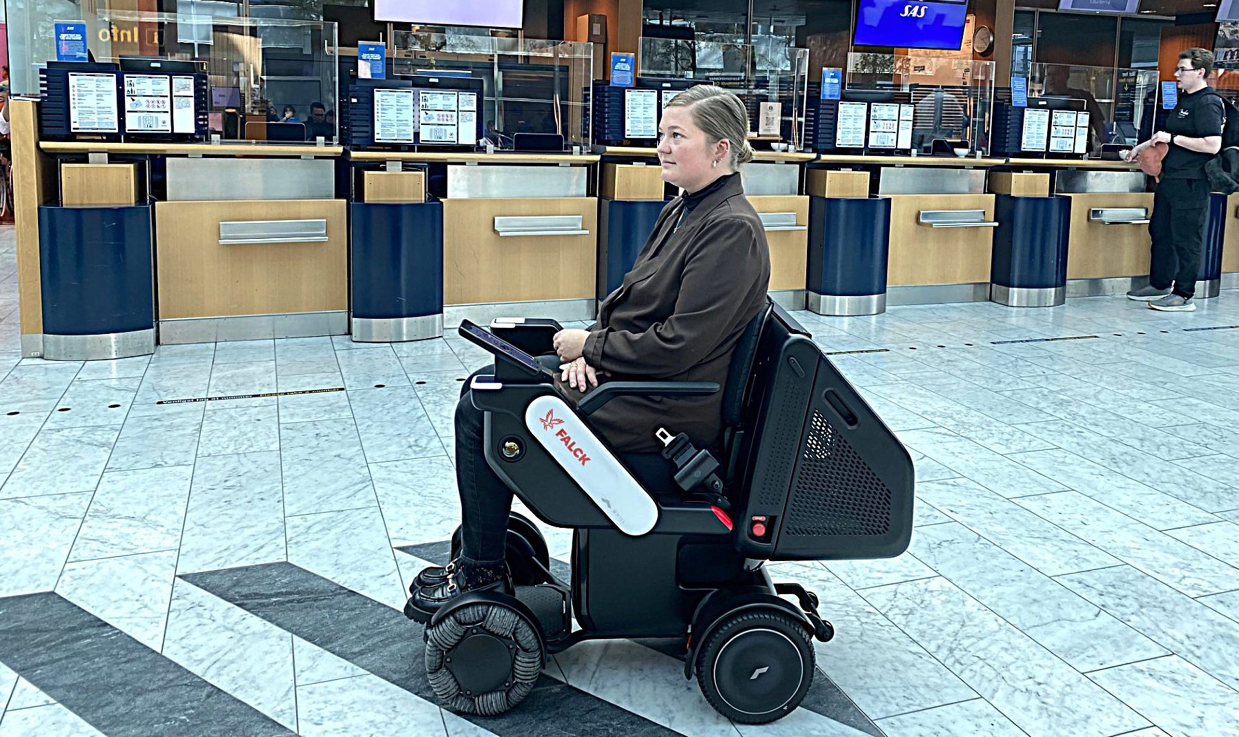 Falcks selvkørende kørestole i Københavns Lufthavn er på lige fod med de traditionelle kørestole tilgængelige for alle lufthavnens passagerer, der har behov for assistance til at komme til deres boardinggates.