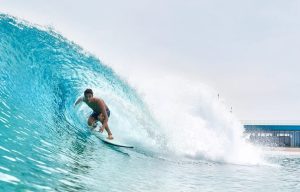De kunstige bølger skabes af avanceret teknologi i maskinrummet, der suger havvandet ind og pumper det ud til perfekte surfbølger.